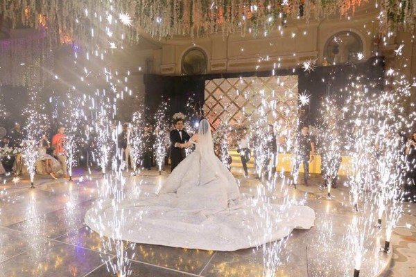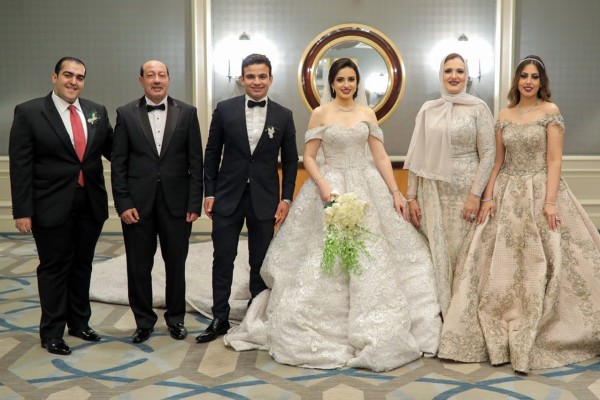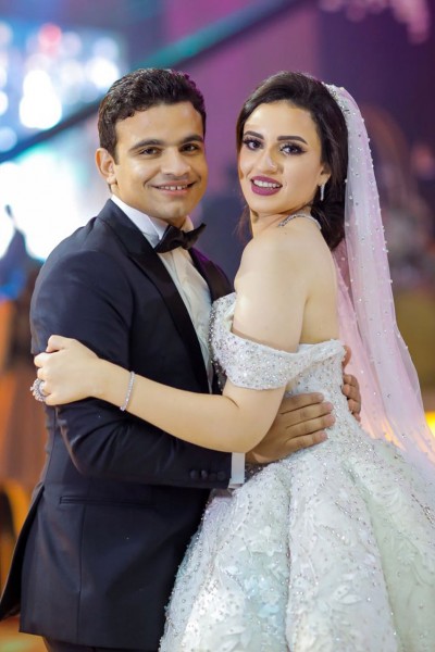 وكان فستانى العروس من تصميم سامو هجرس ومن المقرر ان يطير العروسين لقضاء شهر العسل فى اوروبا وجزر المالديف .