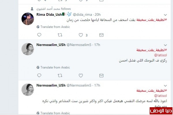 اعتبرت لطيفة أن مزحة شيرين مع جمهورها التونسي خلال حفلها في مهرجان (قرطاج) هي "مزحة سخيفة"، وشنت هجوماً جديداً عليها خلال الحوار، الأمر الذي جعل جمهور شيرين يدشن هاشتاجاً بعنوان (#لطيفة_بقت_سخيفة).