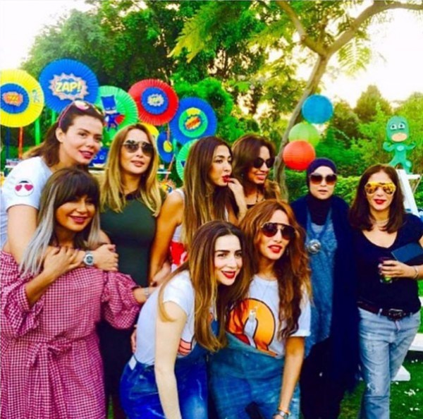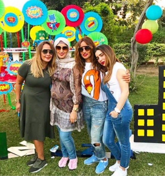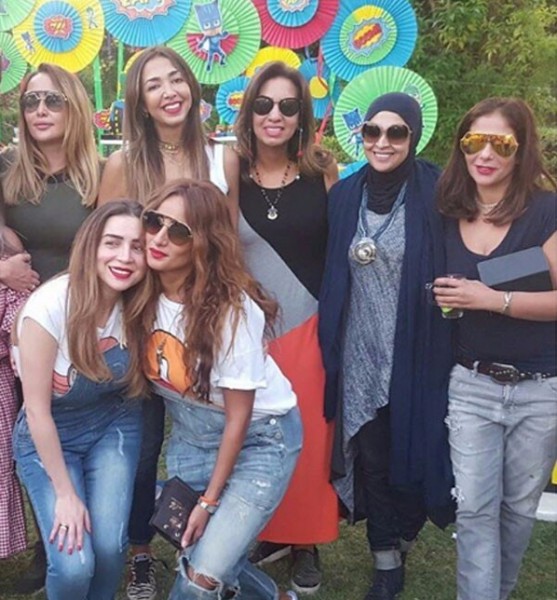 الفنانة المعتزلة التقطت عدد من الصور مع زينة ومع حضور الحفل، وعلى رأسهم صديقتها الفنانة منى زكي، وابنتي خالتها الإستايلست مي جلال، وسارة جلال، والفنانة مي عزالدين.