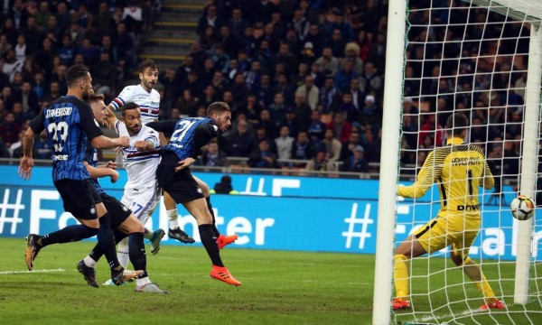 وأثمر ضغط انتر هدفا مبكرا سجله لاعب سمبدوريا السابق السلوفيني ميلان سكرينيار من مسافة قريبة اثر ركلة ركنية (8).