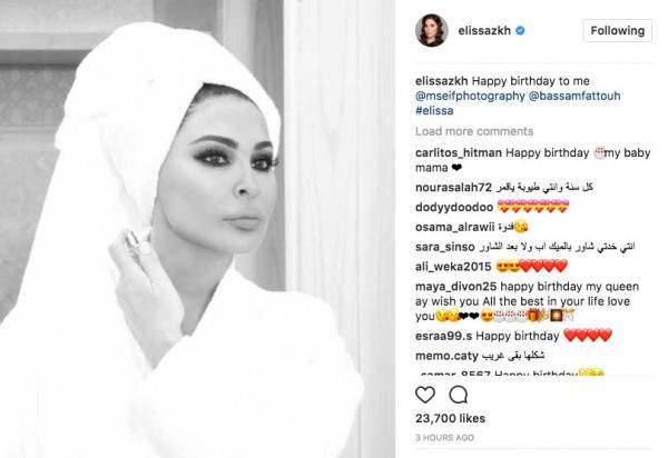 فيما علقت اليسا على صورة اخرى لها بالقول: "عيد ميلاد سعيد لي".