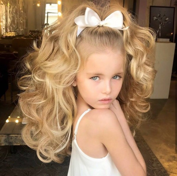 خطفت طفلة الأنظار عبر مواقع التواصل الاجتماعي، بجمالها وشعرها الكثيف.