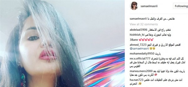 نشرت الفنانة الاستعراضية سما المصري صورة لها عبر حسابها على موقع الصور والفيديوهات الشهير "إنستجرام" علقت عليها قائلة "هنتحر من القرف والملل دا"، ما أثار حالة من الجدل بين متابعيها وتساءلوا عما إذا كانت تمر بأزمة نفسية في الوقت الحالي.