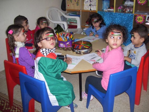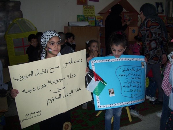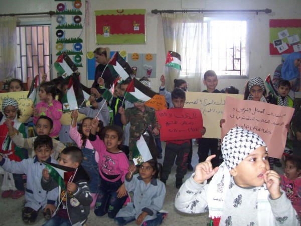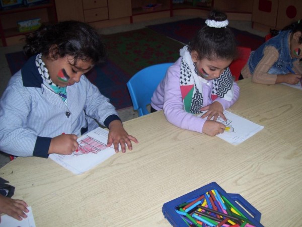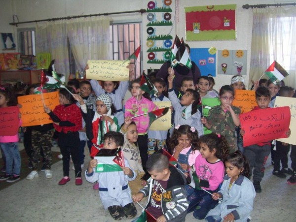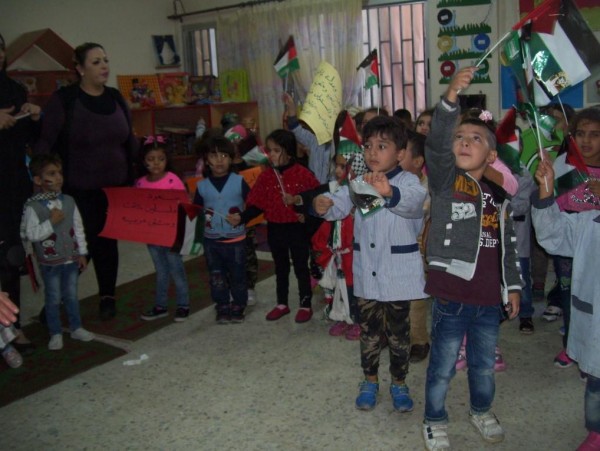 من ناحية أخرى نظم الاطفال اعتصام رمزي في حرم الروضة ، ورفعوا خلاله الاعلام الفلسطينية وشعارات من وحي المناسبة ، بوقت أرتدى البعض الزي التراثي والزي العسكري.