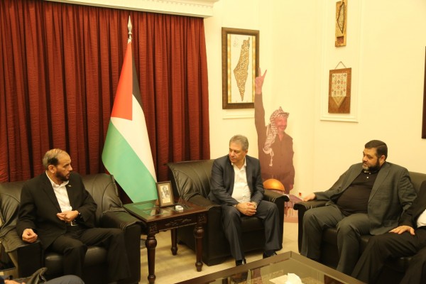 استقبل سفير دولة فلسطين في لبنان أشرف دبور اليوم الخميس، في مقر السفارة، عضو المكتب السياسي لحركة المقاومة الاسلامية حماس حسام بدران، بحضور القيادي في حماس أسامة حمدان وممثل الحركة في لبنان علي بركة ومسؤول المكتب السياسي الدكتور أحمد عبد الهادي وامين سر حركة فتح وفصائل منظمة التحرير الفلسطينية في لبنان فتحي ابو العردات، امين سر اقليم حركة فتح حسين فياض وقائد قوات الامن الوطني الفلسطيني صبحي ابو عرب.