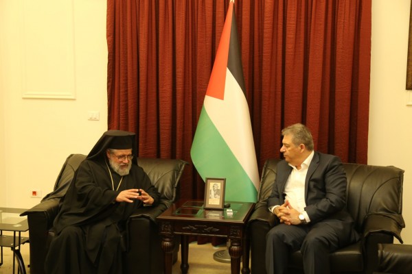 كما استقبل السفير دبور، الارشمندريت عبد الله يوليو رئيس دير الروم الملكيين الكاثوليك في رام الله حيث جرى خلال اللقاء بحث الاوضاع في الاراضي الفلسطينية والانتهاكات الاسرائيلية ضد شعبنا ومقدساته الاسلامية والمسيحية بخاصة في مدينة القدس.