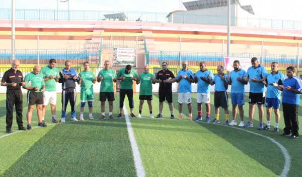 وقبيل انطلاق المباراة عزف السلام الوطني الفلسطيني ومن ثم قرأت الفاتحة على روح الشهيد الرمز ياسر عرفات "أبو عمار" وشهداء شعبنا الفلسطيني.