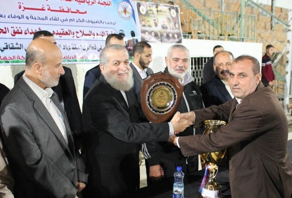 وشارك في المهرجان الرياضي د. اسماعيل هنية رئيس المكتب السياسي لحركة حماس والشيخ نافذ عزام عضو المكتب السياسي لحركة الجهاد الإسلامي وعدد من قيادات العمل الوطني والإسلامي والشخصيات الاعتبارية والرياضيين القدامى.