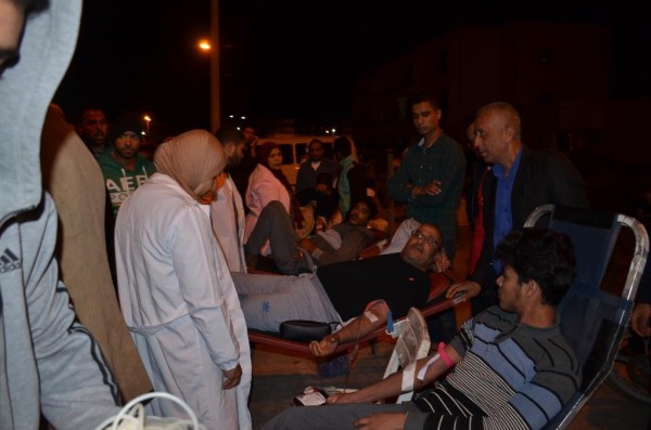 كما توافد المئات من مواطنى الاسماعيلية على المستشفيات يتسابقون للتبرع بالدم لأخوانهم من مصابى الحادث.