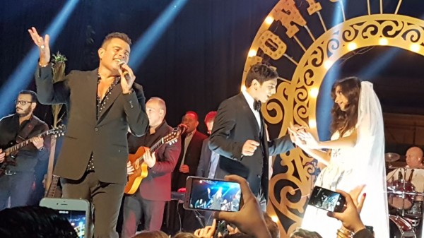 أقيم الحفل داخل خيمة على شكل سيرك وكتب عليها "circus love" وأحيا أولى فقراته الهضبة الذي صعد بصحبة فقرته على خشبة مسرح حيث قدم عدد كبير من غانيه الشهيرة التي تفاعل معها العروسين وأصدقائهما.