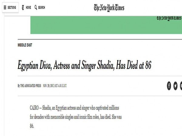 فيما اهتمت صحيفة لوس أجلوس تايم "Latimes": بالقاء الضوء على الجنازة وذكرت "توفت شادية في وقت متأخر من يوم الثلاثاء نتيجة مضاعفات عن عمر يناهز 86 عاماً".