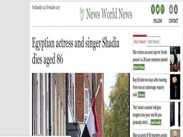 أهتمت الصحف الأجنبية والعالمية بخبر وفاة الفنانة شادية أمس الأول الثلاثاء .. حيث نشرت صحيفة نيويورك تايم "nytimes": " ولدت فاطمة شاكر في عام 1931، ولكن إشتهرت طوال حياتها المهنية بإسم "شادية"، وفي بداية هذا الشهر تعرضت لسكتة دماغية ثم دخلت في غيبوبة، واهتمت الصحيفة في تغطيتها بزيارة الرئيس عبدالفتاح السيسي وحرمه لها في المستشفي العسكري التي نُقلت إليها مؤخراّ".