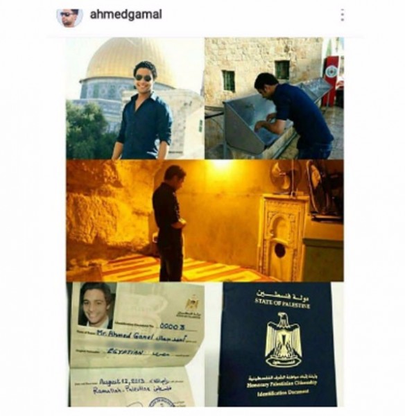 الفنان المصري نشر مجموعة صور له خلال تواجده في مدينة القدس، كما نشر صورة لجواز سفره الفلسطيني، على حسابه الخاص على موقع "انستجرام".