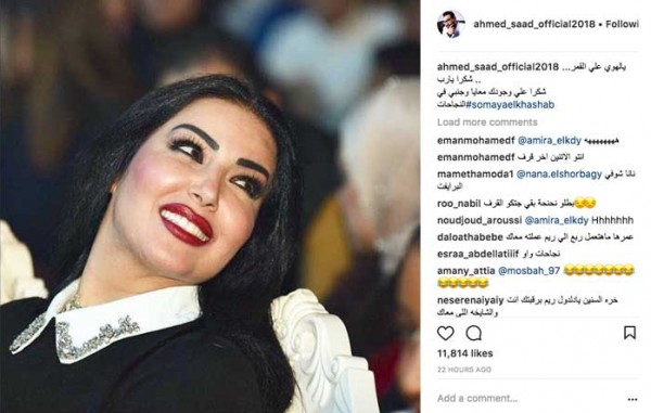 ونشر أحمد سعد صورة لسمية الخشاب عبر حسابه على انستغرام وعلق عليها قائلا: "يالهوي علي القمر… شكرا يارب .. شكرا علي وجودك معايا وجنبي في النجاحات".