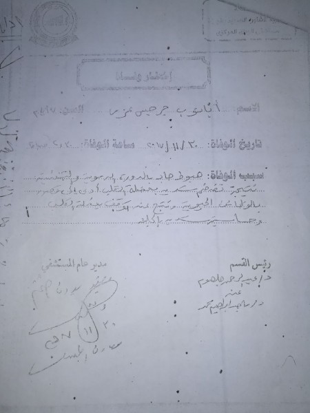 وناشد والد الطفل المكلوم، بتحقيق العدالة ومساعدته فى الحصول على حق ابنه الذى لقى حتفه نتيجة إهمال طبى من الأطباء والممرضين.