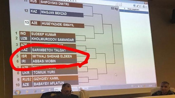وأسفرت القرعة عن مباراة بين شهاب الدين متولي، وهو عربي من إسرائيل من مدينة الناصرة، التي تعتبر أكبر مدينة عربية في إسرائيلية، مع عباسي مبين، وهو ملاكم إيراني، رفض لقاء متولي، بعد أن علم بأنه يمثل الفريق الإسرائيلي.
