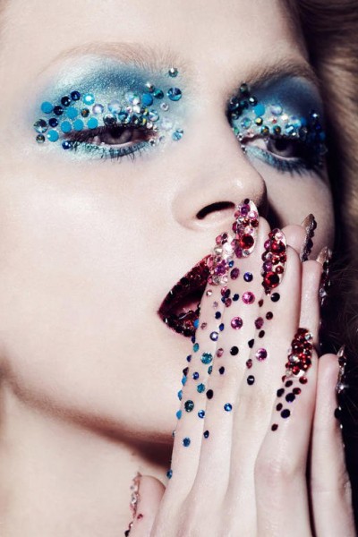 انتشرت طريقة جديدة لتزيين الوجه في آخر صيحات مكياج العين. حيث شهدنا استخدامًا كثيفًا للأحجار اللامعة كالسواروفسكي، أو الكريستال مع المكياج، ولا سيّما على العين.