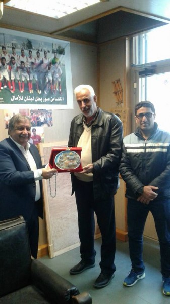 زار وفد من المؤسسة الفلسطينية للشباب والرياضة أمين سر نادي التضامن صور السيد سمير بواب في مكتبه في مدينة صور وذلك يوم الأربعاء 27/12/2017