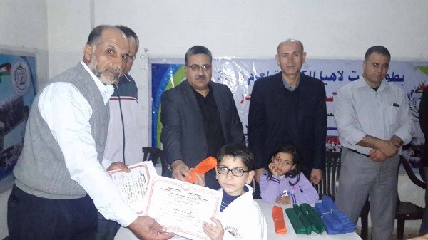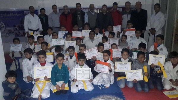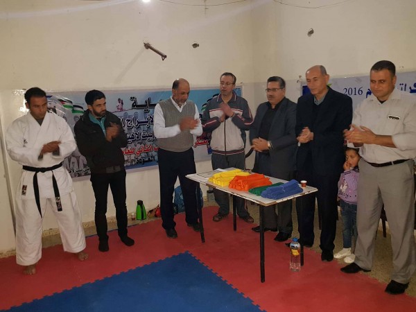 في حفل تخرج فرق للكاراتيه من الأشبال والشباب و بحضور بطل فلسطين للكاراتيه البطل/ رزق طنطيش قام الأمين العام للتجمع وبطل فلسطين ورئيس المركز والمدربين بتسليم شهادات وأحزمة تخرج المستويات.