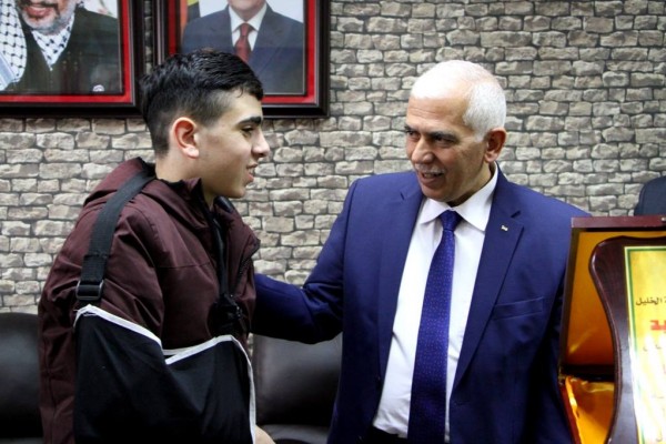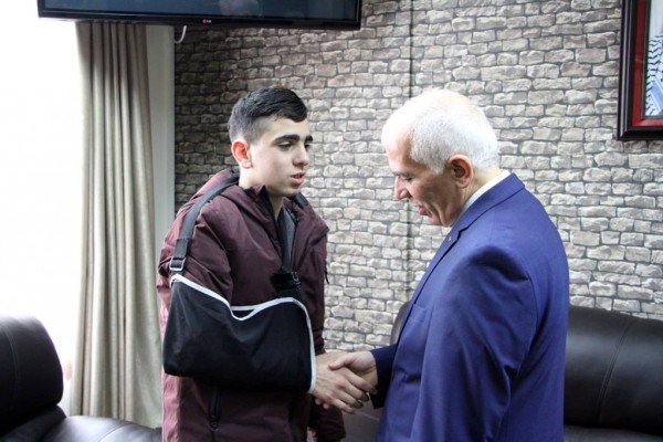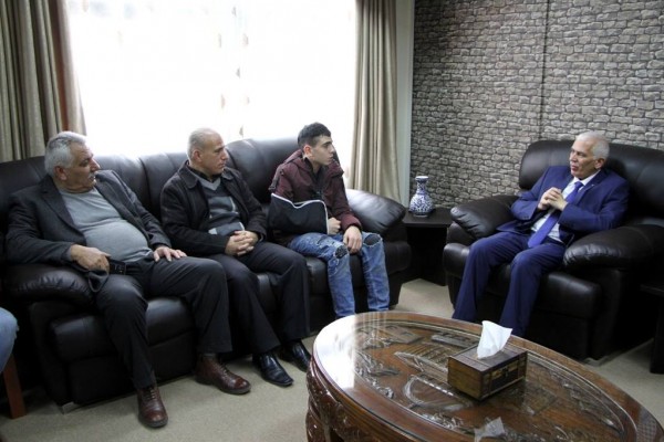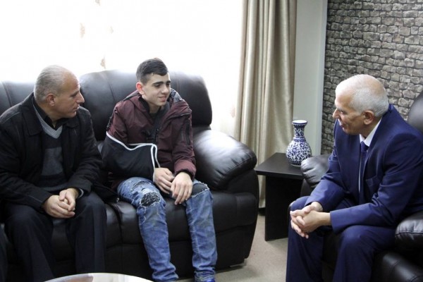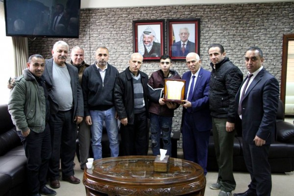 استقبل محافظ الخليل كامل حميد في مكتبه ظهر اليوم الخميس الاسير المحرر الفتى فوزي الجنيدي يرافقه مدير نادي الاسير امجد النجار وذوي الاسير وذلك بعد ان أفرجت عنه سلطات الاحتلال الليلة الماضية بعد اعتقاله في منطقة باب الزواية وسط مدينة الخليل.