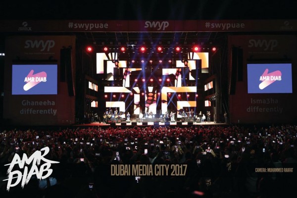 أحيا النجم المصري عمرو دياب، ليلة أمس (الجمعة)، أولى حفلاته الغنائية في دبي، والتي نظمتها شركة ميشن كونترول اكس لتنظيم الحفلات، على مسرح مدينة دبي للإعلام، والذي يتسع لنحو 10 آلاف شخص، وكانت الحفلة قد لقيت إقبالاً جماهيرياً واسعاً، حيث تدفق على الحفل الآلاف من محبي ومعجبي النجم المصري الملقب بـ "الهضبة"، الذي قدم حفلاً امتد لساعات ما بعد منتصف الليل.