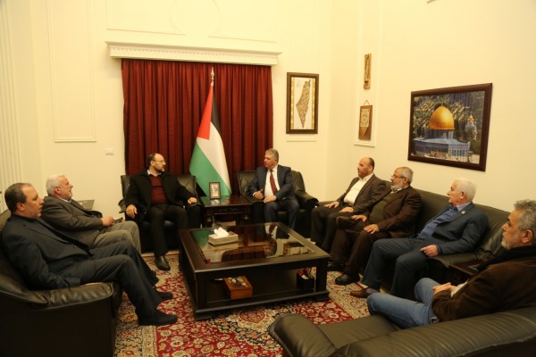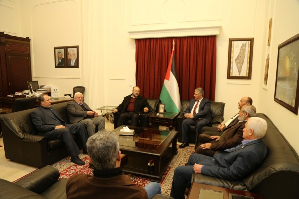 كما قدم الوفد التهنئة باسم حركة حماس بمناسبة الذكرى الثالثة والخمسين لانطلاقة الثورة الفلسطينية.