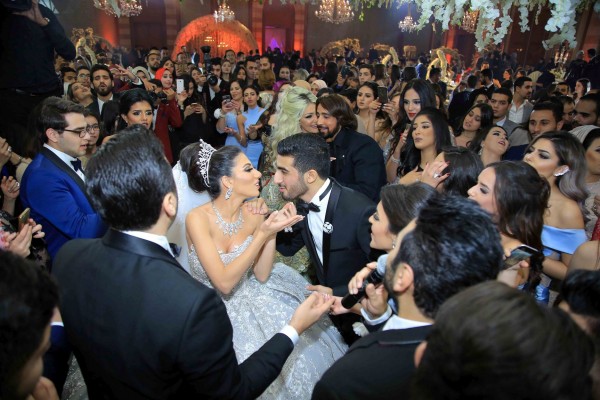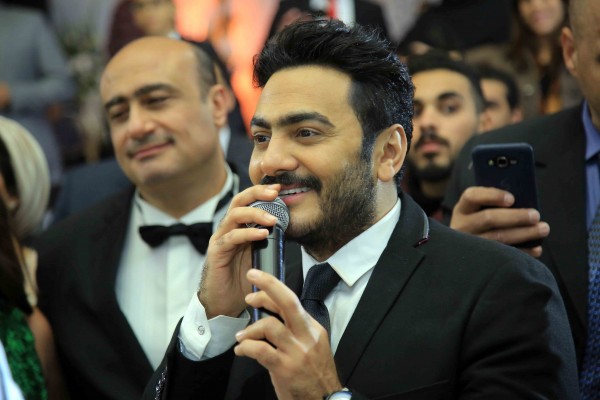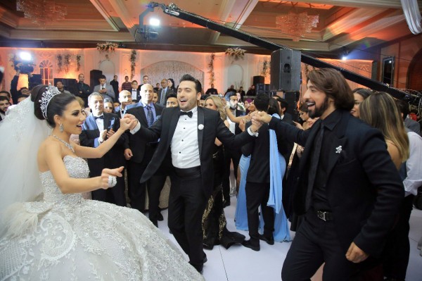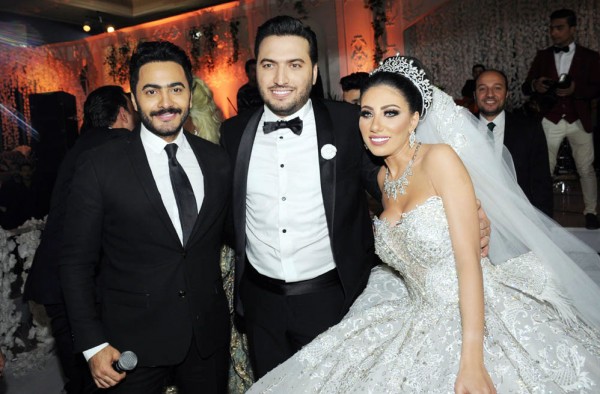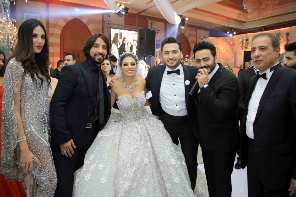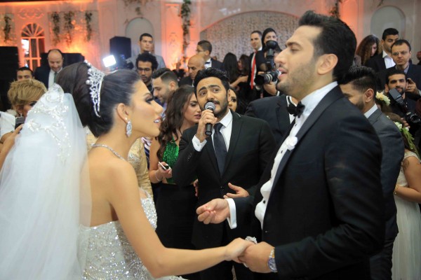 تامر حسني وحكيم وبوسي يشعلون زفاف كريم الرافعي ونتالي قطامش