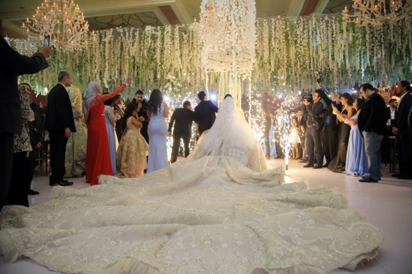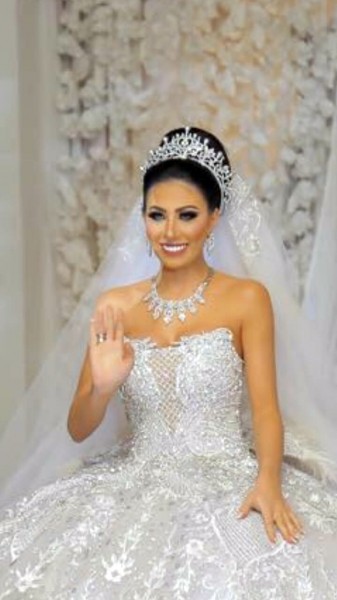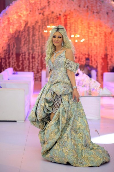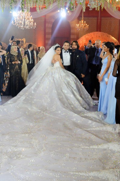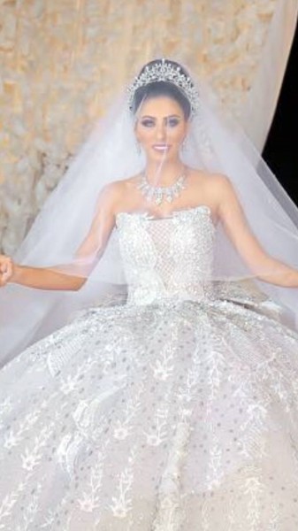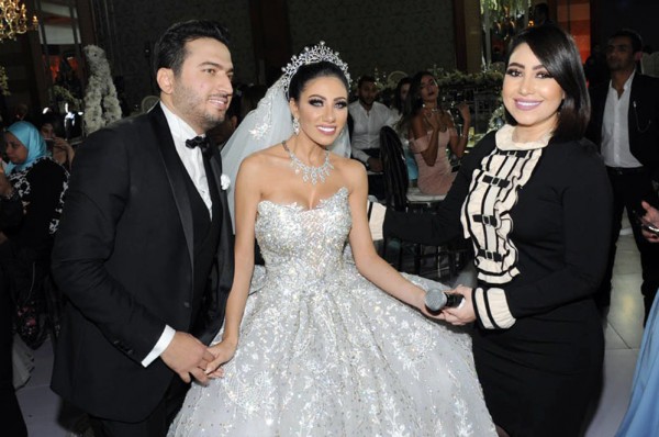 تألقت العروس بفستان خطف أنظار الحضور للفنان العالمى هانى البحيرى، حيث استغرق تصميمه قرابة الـ6 أشهر، وأعدت ديكورات الحفل رحاب على.