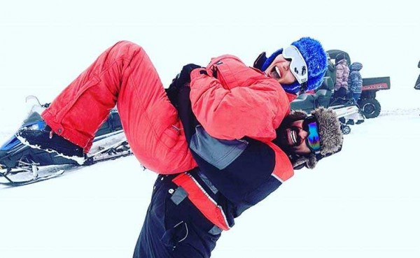 سمية الخشاب في أحضان زوجها في الثلج