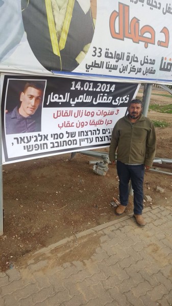 وكان توجه والد الشهيد، السيد خالد الجعار، للنائب الزبارقة وكشف عن اعتداء الشرطة على اللافتات والمساس بمشاعر العائلة. وجاء في الرسالة: "تخليدا لذكرى الشهيد سامي الجعار والتي تصادف بتاريخ 14/01/2018 نصب والد الشهيد، السيد