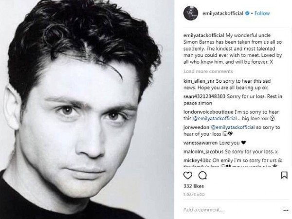 وكان سيمون عم نجمة البرنامج التلفزيوني " Inbetweeners" الممثلة إميلي أتاك. وعبّرت إميلي قائلة:"أخذ عمّي الرائع سيمون منّا فجأة. كان أروع وأكثر رجل موهوب ممكن أن تتعرّف إليه. أحبّه كلّ من عرفه".