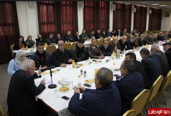 بداية الاجتماع تم اقرار الجلسة السابقة والتوصيات التي تم اتخاذها ومن ثم استعرض حميد الوضع العام وقال " رغم ان الظروف صعبة جدا وخطيرة ووجود اطراف كثيرة تحاول تغيير الوضع التاريخي لفلسطين وللقضية الى ان القيادة الفلسطينية متماسكة وقوية وتجابه سياسيا على كل المستويات الدولية وهي صامدة وتحقق انجازات لذلك يجب على الجميع مساندة القيادة الفلسطينية في ظل هذه الهجمة الشرسة التي تتعرض لها القيادة وبالرغم من ذلك هناك وقفة دولية حقيقية مع القيادة الفلسطينية , ويجب ايضا ترتيب البيت الداخلي الفلسطيني وتحقيق الوحدة الوطنية والمطلوب هو التماسك واعداد الخطط للمستقبل ولأسوء السيناريوهات ".