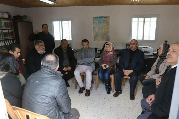 سلمت اللواء رائدة الفارس مسؤولة المساعدات الانسانية في مكتب الرئيس مكرمة رئاسية لطلبة المدارس المحاذية لجدار الفصل العنصري والمستوطنات في محافظة الخليل يرافقها مديرة ملف المساعدات في المحافظة ايمان ابو عريش .
