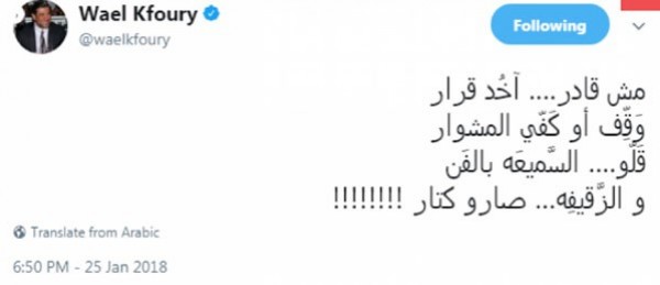 تغريدة وائل كفوري الأخير تثير رعب جمهوره
