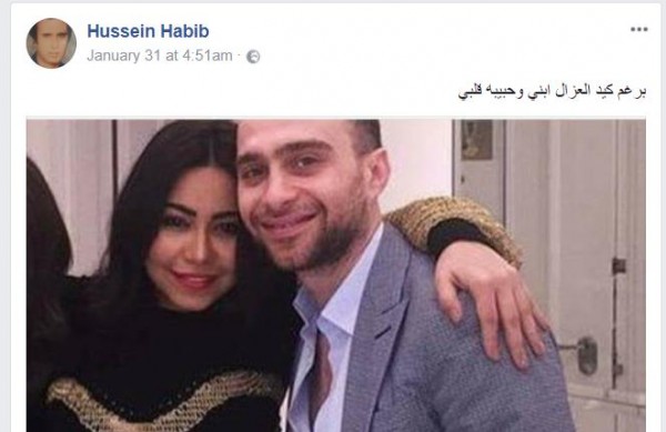 يبدو أن الجدل حول علاقة شيرين عبد الوهاب بالفنان حسام حبيب لن يتوقف، فقد صدم حسين حبيب والد حسام متابعيه عبر فايسبوك بنشر صورة جديدة تجمع إبنه بشيرين وعلق عليها قائلاً :"برغم كيد العزال ابني وحبيبة قلبي".