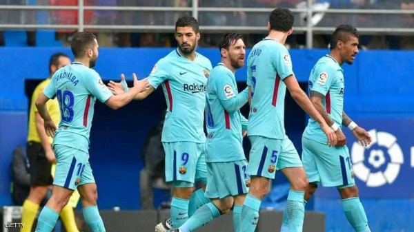 ورفع برشلونة رصيده إلى 62 نقطة متفوقا بعشر نقاط على أتليتيكو مدريد الذي يستضيف أتليتيك بيلباو الأحد. وسيحل ريال مدريد حامل اللقب ضيفا على ريال بيتيس في اليوم ذاته.