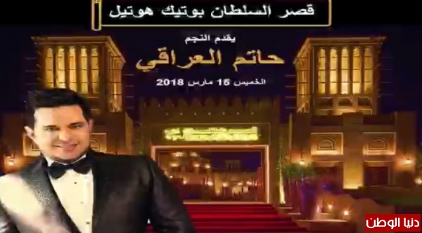وفي إمارة دبي، ومن خلال مسرح فندق قصر السلطان بوتيل هوتيل، يحيي حاتم العراقي حفلة الثاني خلال منتصف شهر مارس يوم 15 مارس، والذي تم فتح باب بيع التذاكر به في الأماكن والمراكز المتخصصة، والذي سيحييه برفقة فرقته الموسيقية ضمن برنامج غنائي سيتم إختيارة خصيصاً من أجمل وأهم مواويله وأغانيه.