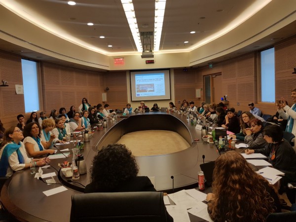 ضمن اليوم الخاص على شرف يوم المرأة العالمي عقدت اللجنة البرلمانية للنهوض بمكانة المرأة جلسة خاصّة حول قرار الأمم المتحدة رقم 1325 الذي يحتّم على الدول الأعضاء العمل لحماية النساء في مناطق الصراع ودمج النساء وتعميق دورهن في المساعي للوصول الى حل للصراعات وإيقاف العنف. حيث أظهرت المعطيات التي عرضتها جمعيّة "ايتاخ-معك" اهميّة دمج النساء في مواقع اتخاذ القرار بكل ما يتعلّق بحل الصراعات العنيفة والمساعي للوصول الى اتفاقيات سلام وحفظ الامن، حيث يظهر جليّا من خلال فحص أجرته الأمم المتحدة والذي فحص 181 اتفاقيّة سلام عقدت بين السنين 1989-2011 ان أكثر من نص الاتفاقيات لم تصمد لأكثر من خمس سنوات بالمقابل اتفاقيات السلام التي عقدت باشراك مباشر للنساء تحظى باحتمال اكبر ب-35% للنجاح لفترات تتجاوز الخمسة عشر عامًا.