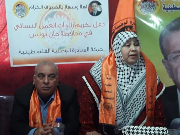 نظمت حركة المبادرة الوطنية الفلسطينية في محافظة خانيونس حفل تكريم لرائدات العمل النسائي في محافظة خانيونس بمناسبة اليوم العالمي للمرأة، بحضور مسؤول حركة المبادرة الوطنية الفلسطينية في قطاع غزة د. عائد ياغي والعشرات من رائدات العمل النسائي في حركة المبادرة الوطنية الفلسطينية.