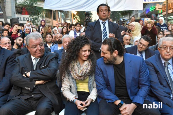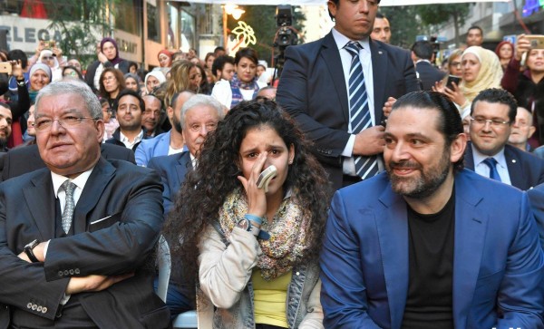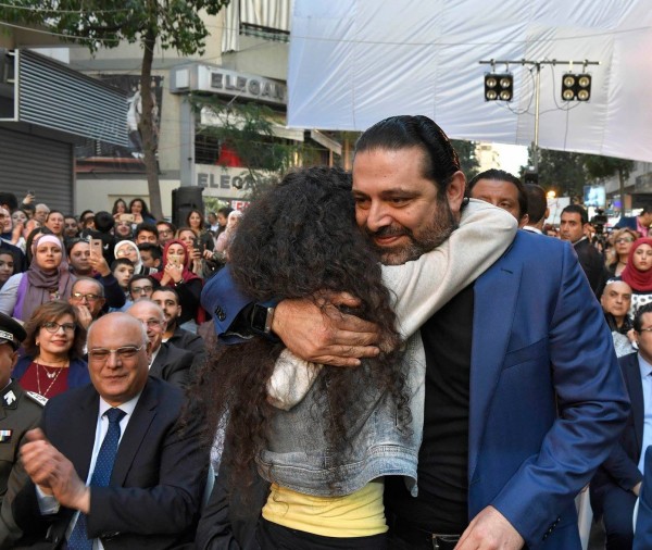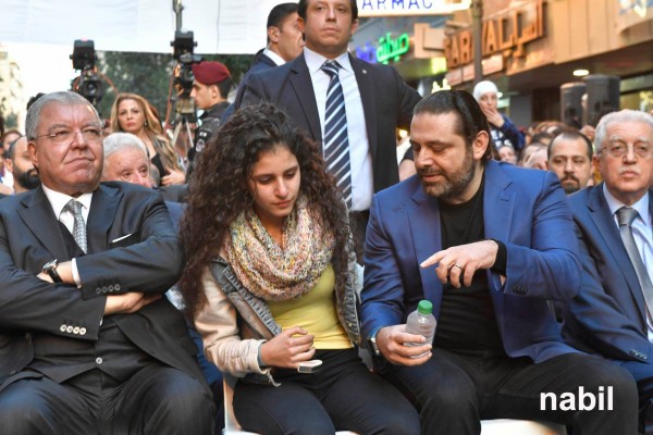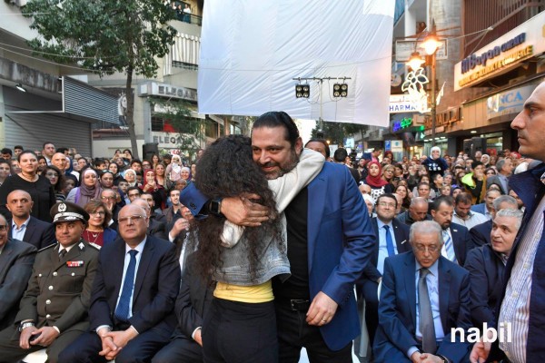 نشر مصور رئيس الحكومة اللبنانية سعد الحريري نبيل اسماعيل على صفحته عبر فيسبوك صورا لفتاة تعانق الحريري خلال افتتاحه مهرجان "شمس الربيع" الذي نظمته جمعية تجار بربور في شارع بربور.