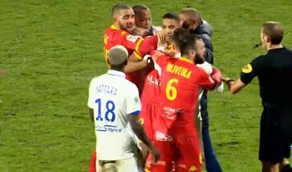 وأدى العراك بالأيدي لتدخل لاعبين من الفريق المنافس لكن ذلك لم يمنع الحكم من طرد اللاعبَين بيير بولومات وميكائيل باريتو، من المباراة التي انتهت بخسارة أوكسير 4-1.
