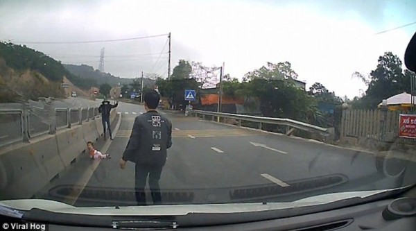 وبثَّت صحيفة "الديلي ميل" البريطانية، فيديو للواقعة التي حدثت يوم 13 مارس الجاري، على الطريق السريع في محافظة "كوانغ ننه" شمالي فيتنام، حين فُوجِئ سائق شاحنة برضيع يزحف عبر الطريق السريع، وبسرعة بادر سائق الشاحنة بالتهدئة، كما أخرج يده من السيارة لينبّه أصحاب السيارات القادمة بالتوقف، وبالفعل توقف صاحب السيارة التي التقطت الحادث، وهبط من سيارته لنجدة الرضيع، وفي تلك اللحظة جاءت أم الرضيع وحملته بعيدًا عن الطريق.
