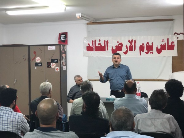 وبعد افتتاحية سياسية للدكتور رائد ابو إصبع، قدم النائب جبارين مداخلة حول سياسات التهويد الإسرائيلية المستمرة منذ النكبة مرورًا بيوم الأرض وصولًا الى ايامنا هذه، من خلال الاستيلاء على الأراضي العربية وهدم البيوت، والهجمة المتجددة على الأراضي والقرى العربية بالنقب.