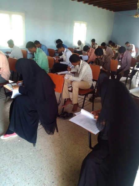 دشنت صباح هذا اليوم الأحد الموافق 25 مارس2018م كلية المجتمع - لحج في مديرية المضاربة ورأس العارة امتحانات الدورة الأولى من الفصل الدارسي الأول في مسعى حثيث يؤكد أن عمادة الكلية وطاقمها ماضيه في تثبيث دعائم هذه المنجز التاريخ الكبير في منطقة الصبيحه.