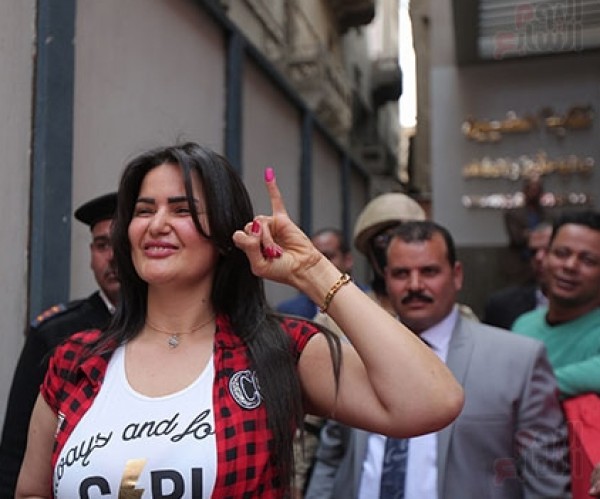 وصلت الفنانة سما المصرى إلى مقر لجنة نقابة المهن التعليمية بدائرة الأزبكية، وهى تقود فيسبا "دراجة بخارية" مرتديه ملابس رياضية، وذلك للإدلاء بصوتها فى اليوم الثانى من إنتخابات الرئاسة التى يتنافس فيها الرئيس عبد الفتاح السيسى والمهندس موسى مصطفى موسى.