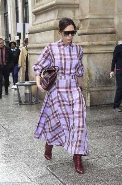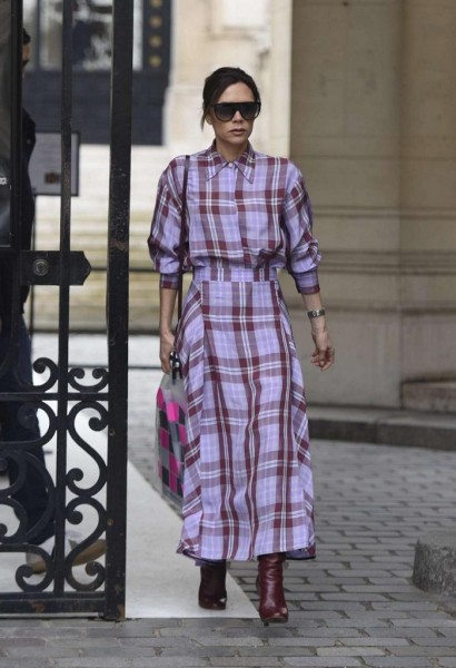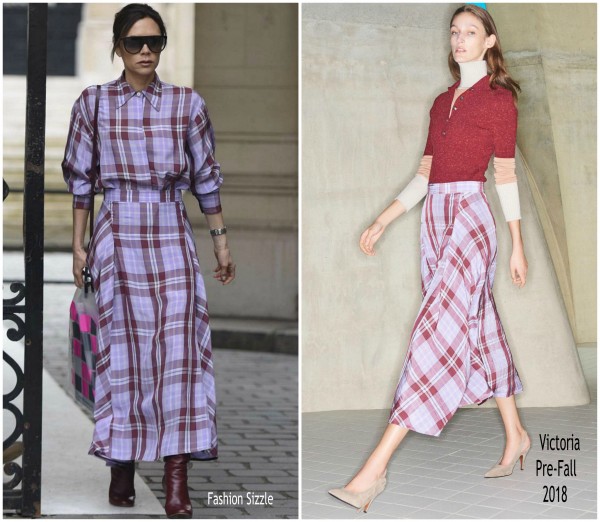 شابه تصميم أعلى الفُستان تصميم القُمصان، وانسدل على جسد فيكتوريا في الأسفل كأنّه تنورة مُنفصلة، مع العلم بأن بيكهام اختارته من أجدد مجموعات علامتها Victoria Beckham. وأكملت العضو السابق في فرقة Spice Girls إطلالتها برفع خصلات شعرها في كعكة خلفية.