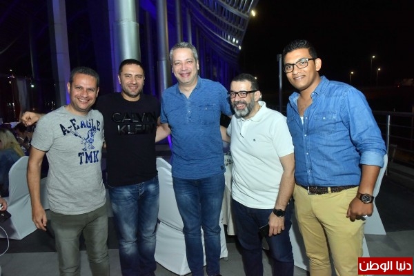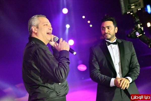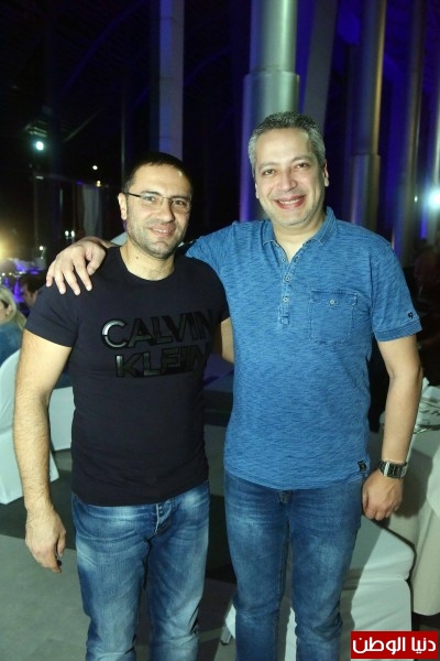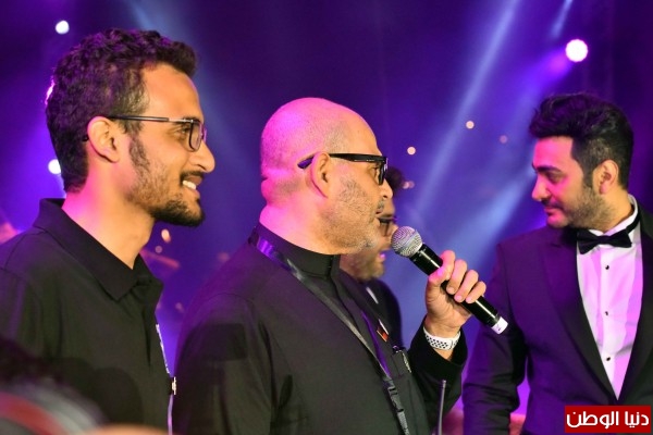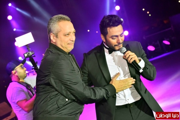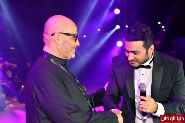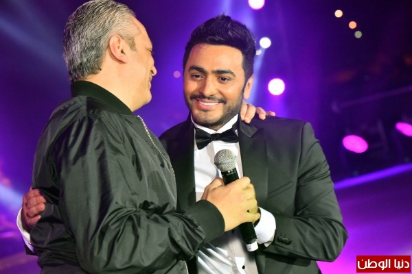وحرص حسني علي دعوة الإعلامي تامر أمين للصعود علي خشبة المسرح الذي من جانبه أكد أن تامر حسني رافع رأس مصر زي العالمي محمد صلاح واشار إلي سعادته بوجود حفل لفنان مصري يضم كل أفراد الأسرة السعودية.