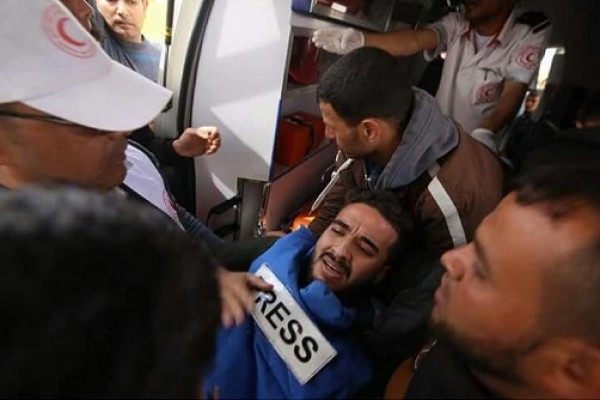 وقال المصور الصحفي الحر احمد سالم بربخ/معمر في افادة لمركز مدى "كنت أقف على مسافة نحو 200 متر من المتظاهرين، وبعد الانتهاء من التقاط الصور المطلوبة للمظاهرة وللتغطية الإعلامية، كنا في طريقنا أنا وزميلي حاتم عمر الذي يعمل الوكالة الصينية نغادر المكان، وكنا قد ابتعدنا مسافة لا تقل عن 700متر عن السياج الحدودي، وهناك تم استهدافي بطلقة نارية متفجرة في أسفل البطن، وبالصدفة كنت قريبا جدا من سيارة إسعاف حيث تم نقلي الى مستشفى ناصر، وهناك تبين وجود 14 شظية أسفل البطن، مما استدعى اخضاعي لعملية جراحية استمرت ثلاث ساعات، حيث تم استئصال 30سم من الأمعاء، والسيطرة على النزيف وما ازال في المستشفى تحت المراقبة حتى الآن".