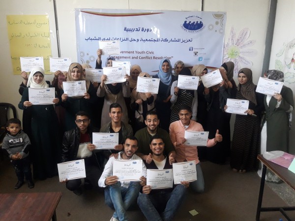 اختتمت مؤسسة صوت المجتمع دورة "تعزيز المشاركة المجتمعية وحل النزاعات لدى الشباب" ضمن أنشطة وفعاليات برنامج تعزيز دور الشباب في المشاركة المجتمعية وحل النزاعات الذي انطلق مطلع يناير في السنة الحالية 2018 لينفذ مجموعة من الأنشطة والفعاليات جاءت الدورات التدريبية على رأسها والتي تهدف إلى تمكين مجموعة من الشبان من كلا الجنسين على الإحاطة بمجموعة من المفاهيم أهمها القيادة الشابة ، آليات تطبيق مفاهيم السلم الأهلي في المجتمع الفلسطيني ، حملات الضغط والمناصرة وحل النزاعات ، مفهومها ومراحلها وأسبابها وطرق الحل .