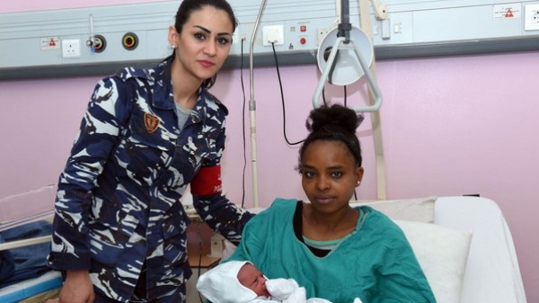 كما ظهرت الرقيب أول في المستشفى تزور الإثيوبية وطفلها، متمنية لهما الصحة والسلامة.
